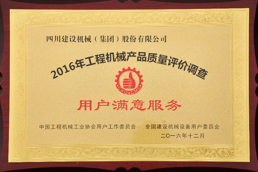 2016年全國用戶滿意產(chǎn)品評價測評結(jié)果公布,四川建設(shè)機(jī)械(集團(tuán))股份有限公司憑借良好的產(chǎn)品和服務(wù)質(zhì)量獲得全國用戶的較高評價,榮獲了“全國塔機(jī)用戶滿意十強(qiáng)”企業(yè);獲得產(chǎn)品質(zhì)量調(diào)查連續(xù)十一次評價“全國用戶滿意”企業(yè);公司生產(chǎn)的C7022、C7050、C7030、P7527塔式起重機(jī)以及SC200/200W施工升降機(jī)被評為“全國用戶滿意產(chǎn)品”;同時獲得“用戶滿意服務(wù)”獎;1989年至今川建已連續(xù)十一次獲得全國用戶滿意獎,得到了業(yè)內(nèi)用戶的高度認(rèn)可。