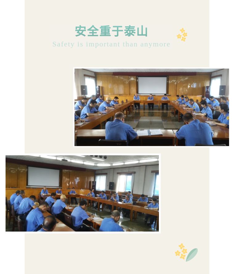 (集團)公司始終貫徹安全生產(chǎn)是公司生存發(fā)展重中之重的理念,安全生產(chǎn)工作要常抓不懈,各部門、各車間必須明確職責,要始終堅持“安全第一、預(yù)防為主、綜合治理”的方針,要落實“四不放過”工作,認真做好安全防范工作,杜絕安全生產(chǎn)事故發(fā)生。